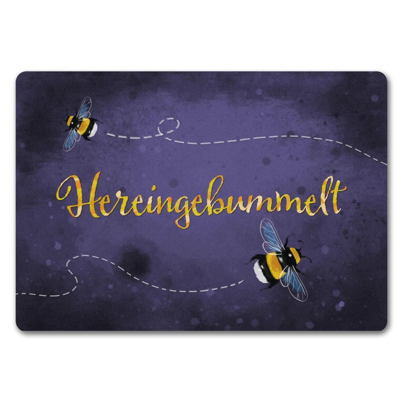 speecheese Hereingebummelt Hummel Doormat in 35 x 50 cm without Border in Purple Door Mat for Spring House Entrance Patio Bumble Bee Cute