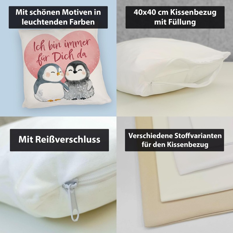 - Box contents: 1 x pair of penguin cushions with saying "Ich bin immer für dich da"