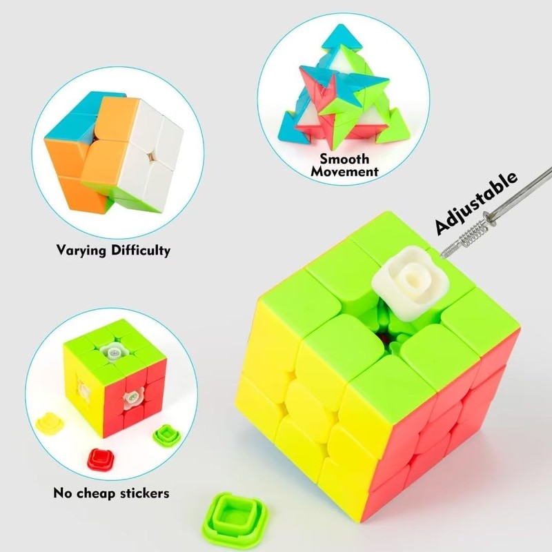 - ALL-AGES FUN:Vibrant stickerless speed cubes (2x2, 3x3 & Pyramid) challenge players to align colors on every face. Perfect for casual solvers and competitive practice – master new algorithms or beat your solve times!