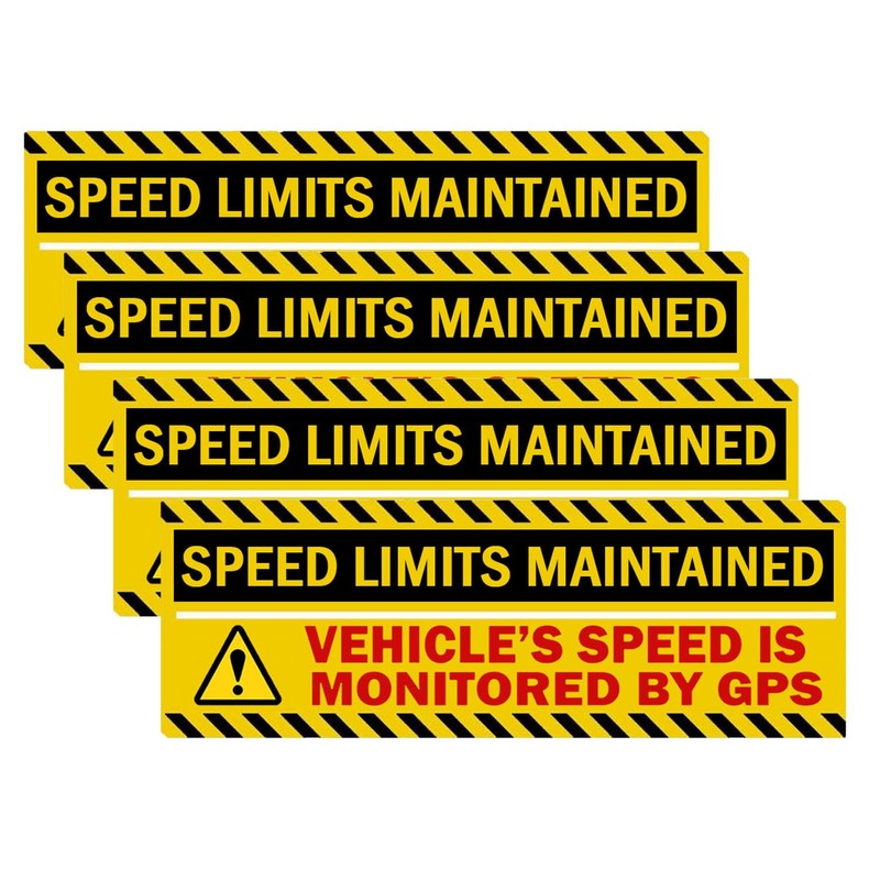 - Speed Limits Maintained Stickers:This set includes 4 stickers, each measuring 10 inches by 3.5 inches. They are perfect for placement on various vehicles, such as cars, trucks, and buses, as well as in workplaces or other areas where speed control is crucial