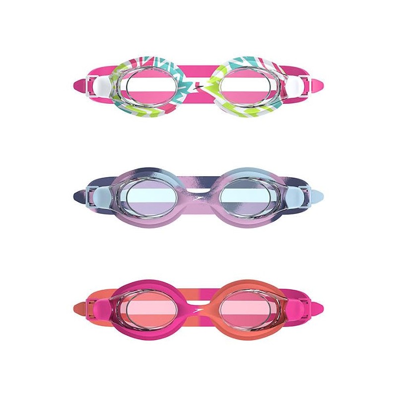 Speedo Kids Swim Goggles 3-Pack – Flexible Leak-Proof Fit, Ages 3-10, Comfortable & Durable Swimming Goggles (Girls)