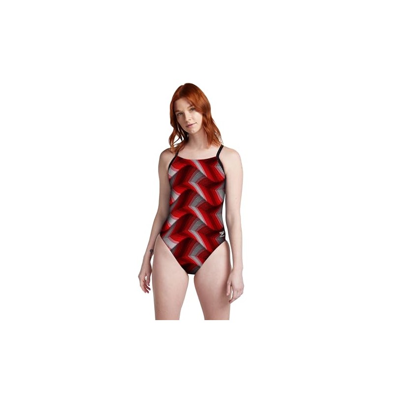 Speedo Women's Endurance Plus Strappy Crossback One Piece Printed Swimsuit - Precision Team Red, Size 30