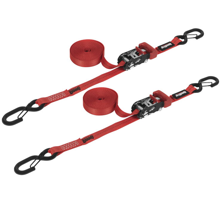 SPEEDSTRAP 1″ X 15′ Ratchet Tie Down w/ Snap ‘S’ Hooks 2 PACK - RED