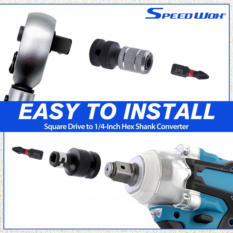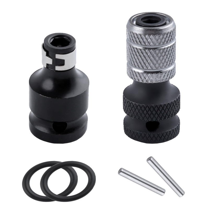 - 【Set Contents】1 piece 1/2" square to 1/4" hex wrench conversion clip, 1 piece 1/2" square to 1/4" hex. Each comes with a pin and holster for maximum convenience. The included pin and holster allows the conversion clip to be securely fastened to your electric spanner for added safety when in use