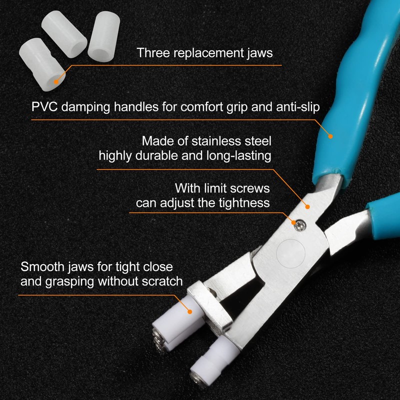 - Material: stainless steel material improves the corrosion resistance of the surface and effectively extends the life of the pliers. Comes with nylon replacement jaws, can be installed by removing the screw.