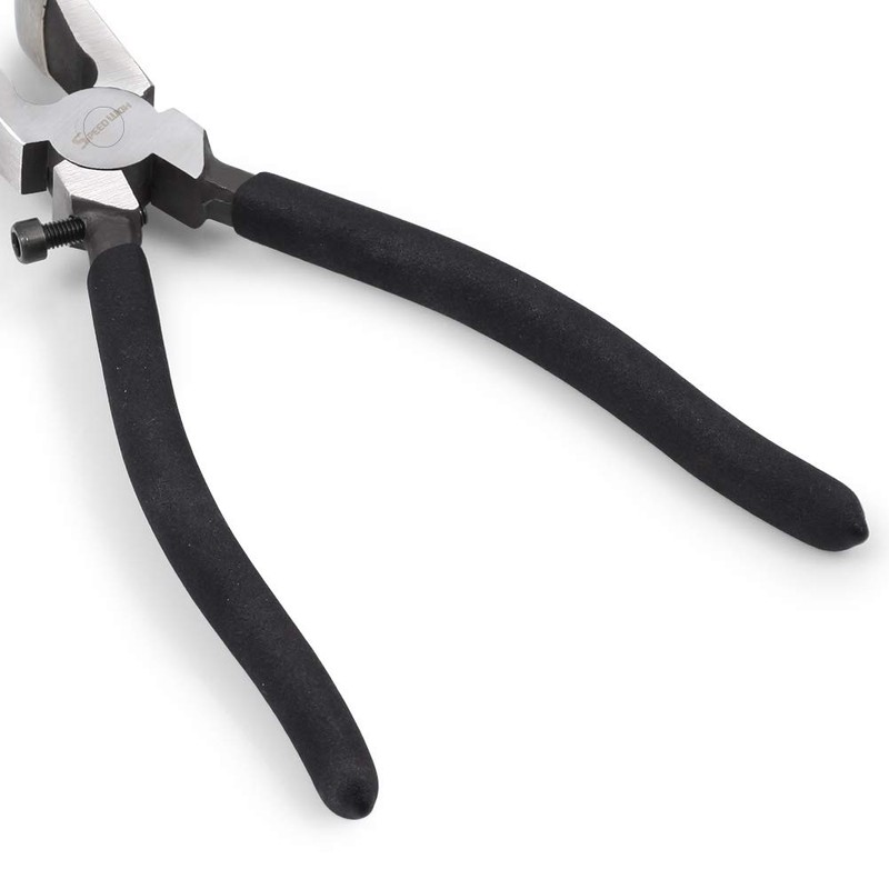 SPEEDWOX Glass Running Pliers with Curved Jaws Black Professional Glass Breaking Tool for Stained Glass Work and Key Fob Hardware Install Mosaics Breaking Tool with 2 Pair of Rubber Tips
