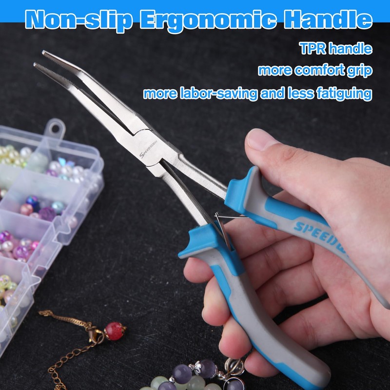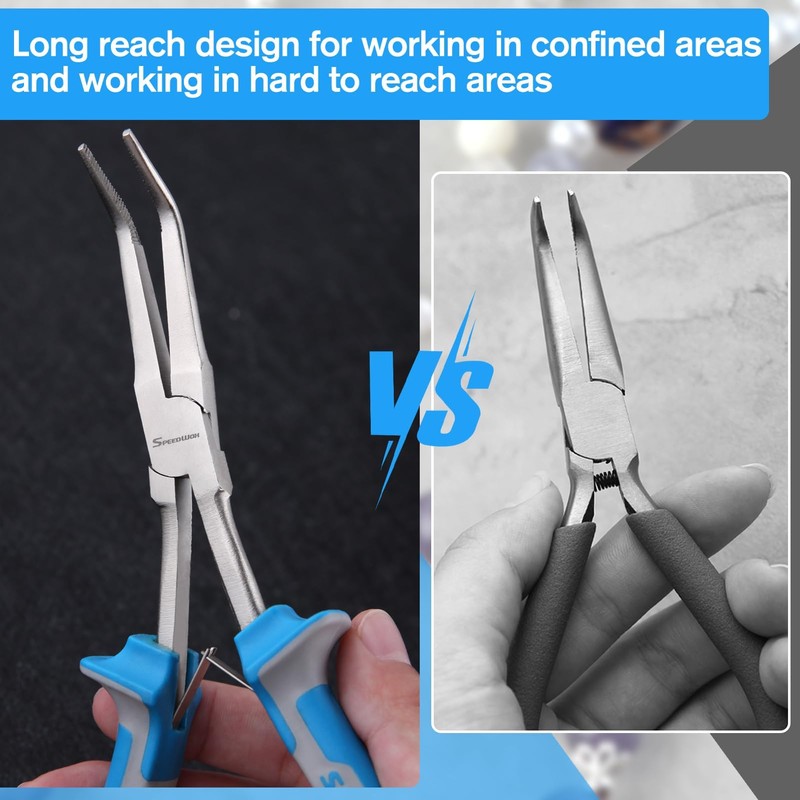 SPEEDWOX Long Reach Curved Nose Pliers with Serrated Jaw, Extra Long Nose, Precision Wire Loop Pliers, Needle Remover Pliers for Hard to Reach Narrow Spaces