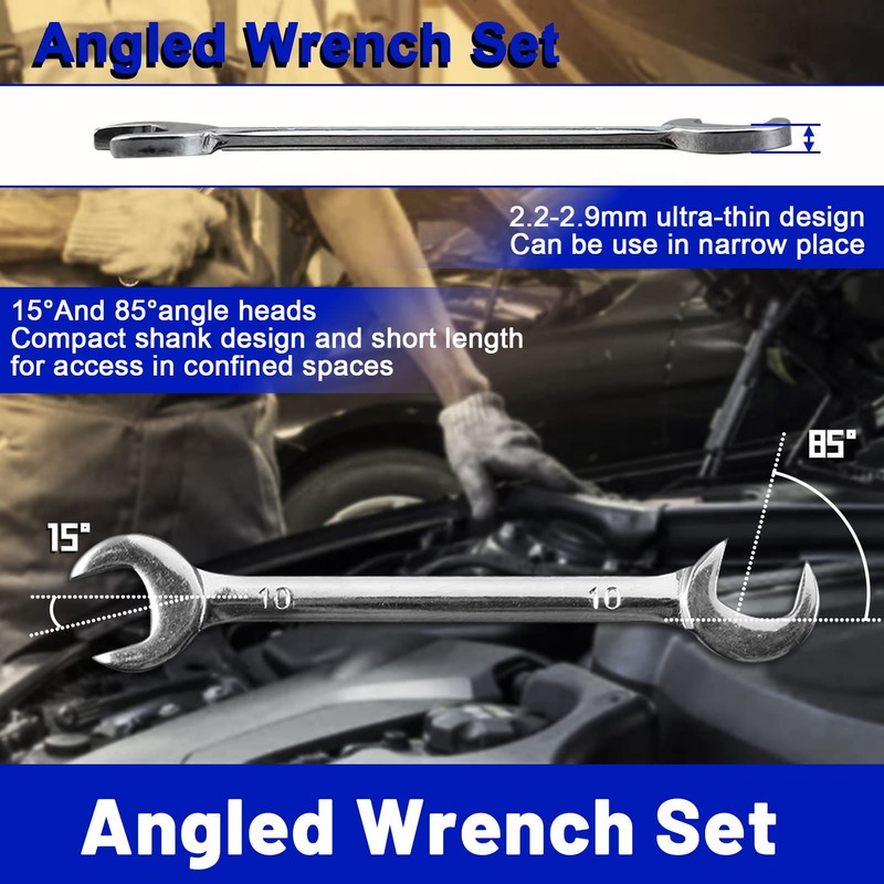- 【ANGLED HEAD DESIGN】Specially engineered 15-degree and 85-degree double open ends allows an increased range of arc swing in tight spaces.