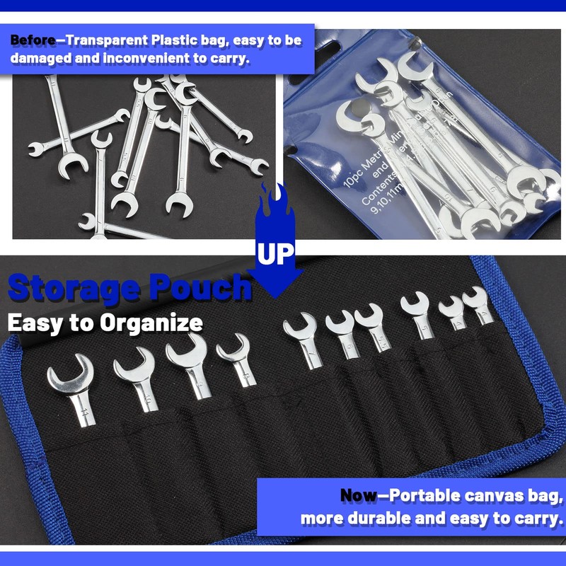 - 【Storage Pouch】The wrench set comes with a storage pouch for convenient store and storage, there is a lanyards between the cover and the package for easy hanging.