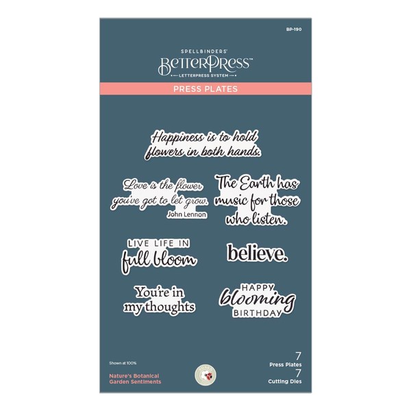 - Nature's Botanical Garden Sentiments Press Plate & Die Set is a part of the Nature's Botanical Garden Collection by Susan Tierney-Cockburn. There are seven different thoughtful sentiment press plates with matching dies to cut out to highlight and lift for dimension.