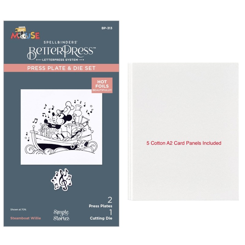 - START CREATING RIGHT AWAY WITH THIS COMPLETE SET - Includes 2 press plates, 1 cutting die featuring the classic Steamboat Willie design, and 5 cotton A2 card panels for letterpress crafting