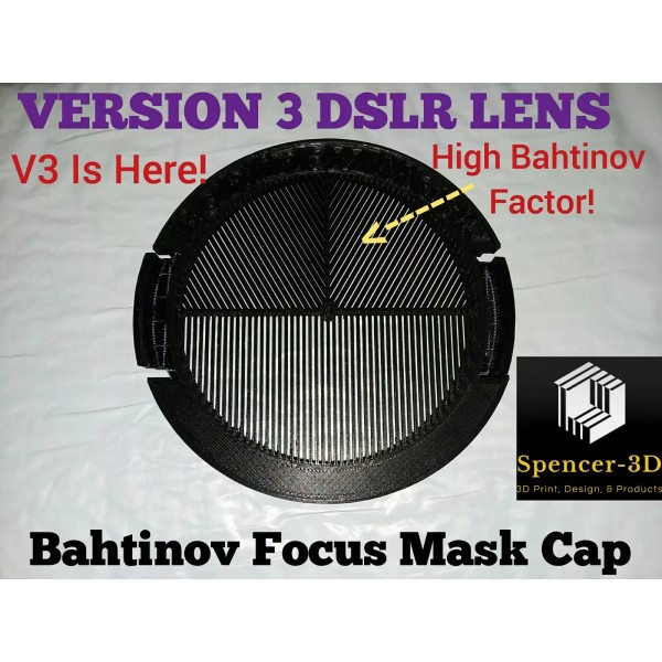130mm Thread DSLR Camera Lense Bahtinov Focus Mask VERSION 3 High Bahtinov Factor . Condition is "New". Shipped with USPS First Class. Free shipping through USPS 2 to 3 days when buying inside the United States. Made with black plastic on 3d printers. Made and designed by Spencer-3D. If need a size thats not posted on my sells list just message me and I will make the size you need no problem. I can design or make changes on just about anything. If need a Bahtinov mask or part ti fit your telescope or camera message me. I do more then just Bahtinov masks, I make and sell alot of different things. I always have shipped out WITHIN 48 hours of purchase unless its an custom made part or its in a weekend or holiday. Usually %90 of items get made and shipped within 24 hours of purchase, so I pride myself on getting your project or products to you as soon as possible . Thanks....Matt
