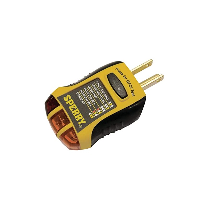 Sperry Instruments GFI6302 GFCI Outlet / Receptacle Tester, Standard 120V AC Outlets, 7 Visual Indication / Wiring Legend, Home & Professional Use, Yellow & Black