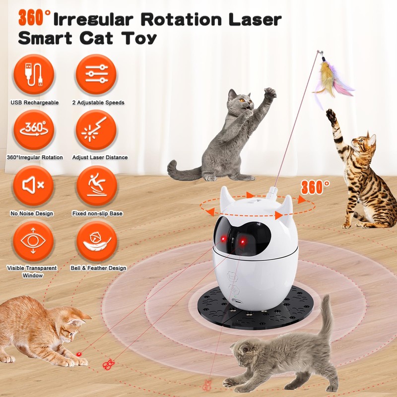 - 2 speed modes: the interactive cat toy has 2 speed modes (fast/slow), you can choose the speed according to the cat's different physique. The cat toy will automatically pause after working for 10 minutes. This electric cat toy provides the best experience for indoor cats,which can enhance the cat's lung function, exercise the cat's physique, but also enhance the interaction between the owner and the cat.