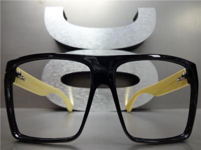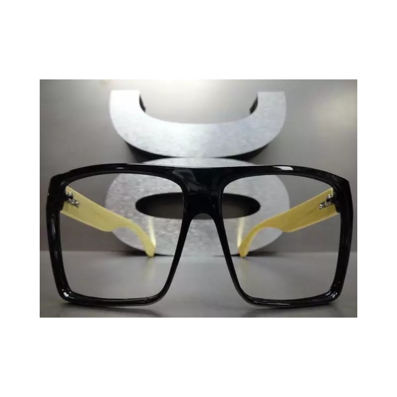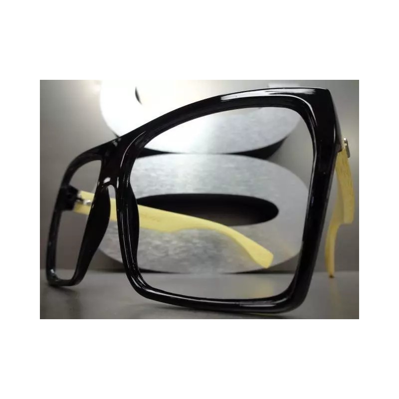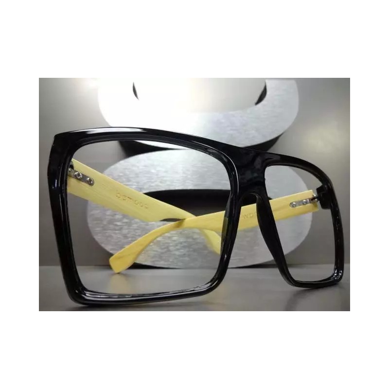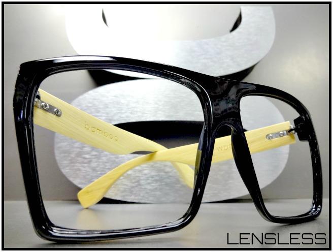 SPEXX Eyewear Oversized Retro Style Large Square Black Lensless Eye Glasses Frame Only NO Lens