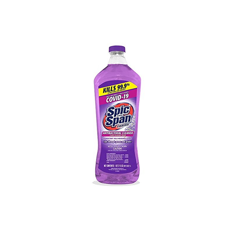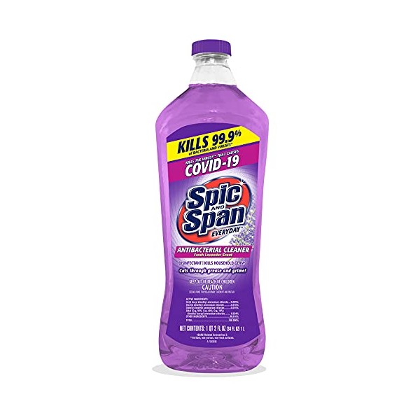 - Spic and Span Lavender Antibacterial Multi-Surface Cleaner is a convenient way to keep surfaces in your kitchen and bathroom looking their best