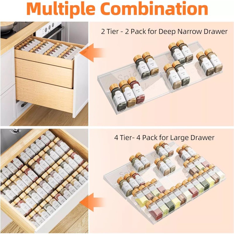 Spice Drawer Organizer, 4 Tier- 4 Pack Clear Acrylic Drawer Seasoning Organizer,