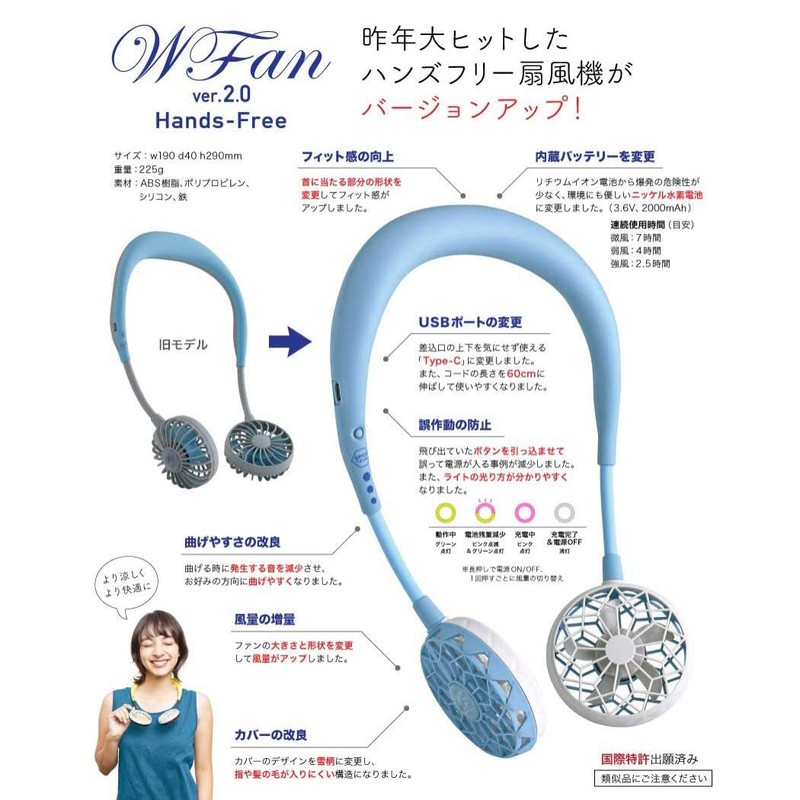 SPICE OF LIFE WFan Ver. 2.0 DF201RB Portable Dual Fan, Hands-Free Mask Fan, Anti-Heatstroke, Low-Noise, Safety Tested, 3 Settings, 7 Hours Continuous, Fits Neck, Nickel, 300 Charges, USB, Raspberry