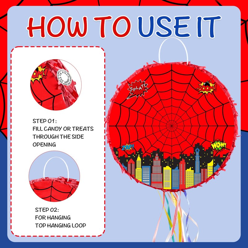 Spider Pinata, 13.7inch Mini Spider Piñata for Kids Spider Birthday Party Supplies