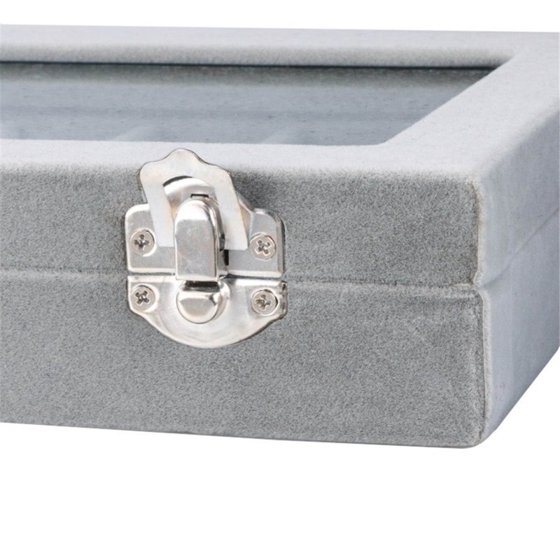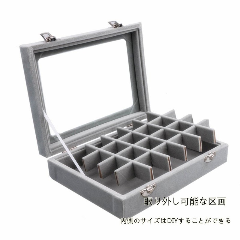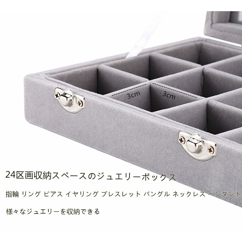 SPIEA 24 Compartment Accessory Box Velvet Jewelry Case Earring Ring Display Storage Case (Gray)