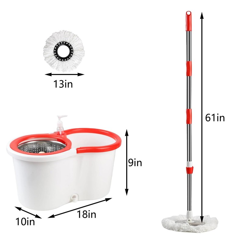 - Convenient Design: The mop bucket comes with a soap bottle, the bottom of the bucket has a rubber stopper for easy draining, and the 61’ retractable handle keeps your back from having to bend and reduces fatigue