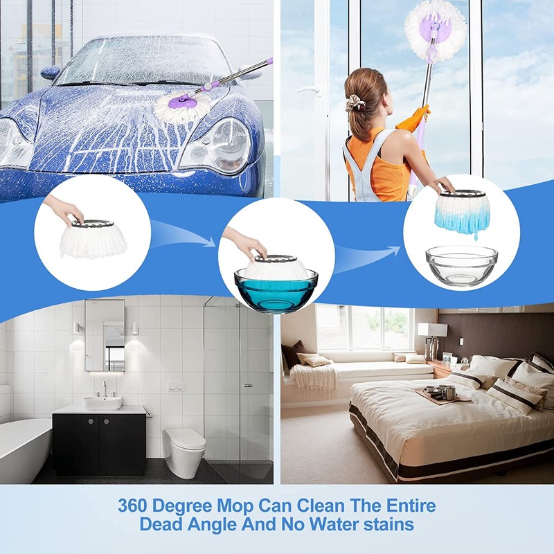• MULTIFUNCTIONAL - The 360° rotating round spin magic mop is suitable for both wet and dry use. It is an ideal tool for removing stains and watermarks. It can apply to floors made of wood, ceramic tiles, marble or other materials. In addition, you can also use it for car or window cleaning.