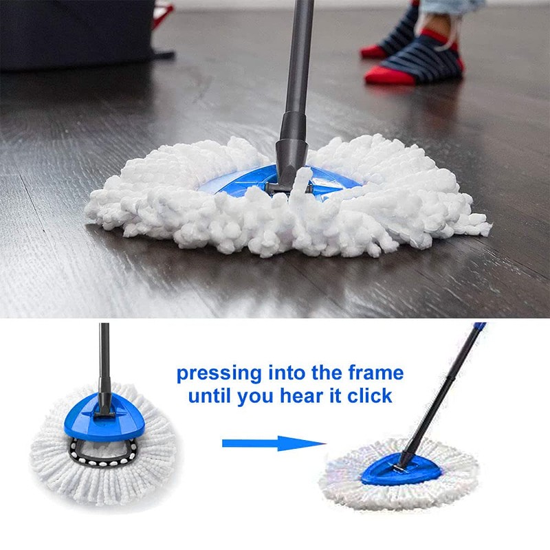 - 【Easy To Change】Follow the instruction to quickly and easily replace your mop head. Easy to replace by just pressing into the frame until you hear it click.