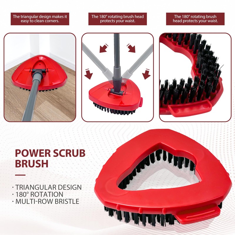- [User-Friendly]: Vlieda scrub mop head rotates 180 degrees, allowing you to easily clean corners and hard-to-reach areas without bending over. Spin mop scrub brush helps protect your back and knees, making cleaning more comfortable and effortless.