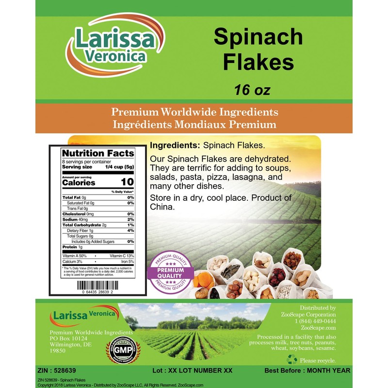 Spinach Flakes (16 oz, ZIN: 528639)