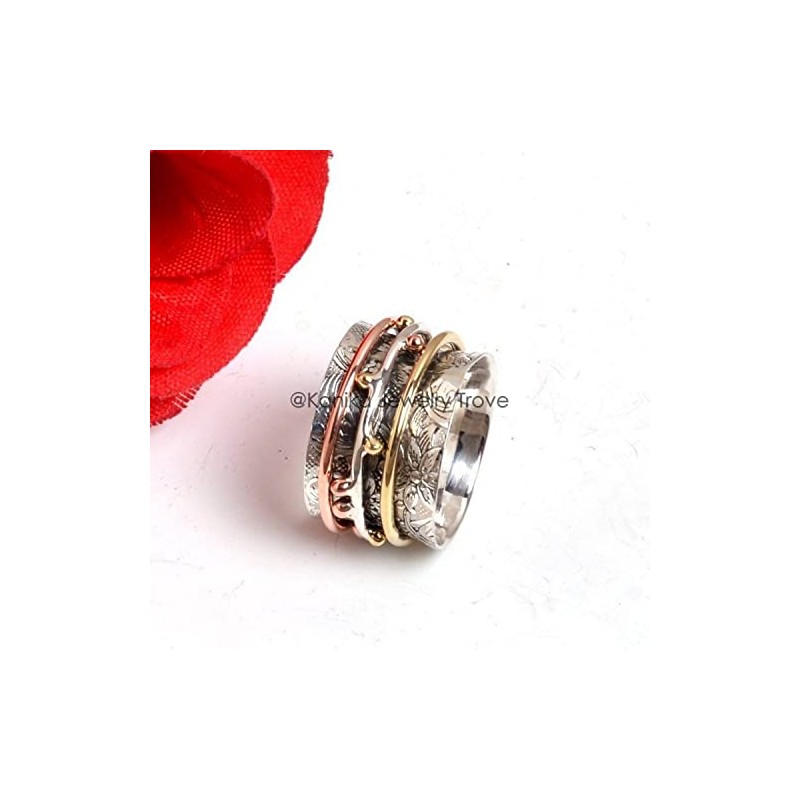 Textured Ring, Ring for Mothers, Womens Ring as Well as Mens Ring, Spinner Ring, Anxiety Ring, Meditation Ring, Thumb Ring, Three Band Ring, , Handmade Ring, Women Spinner Ring, Anniversary Ring