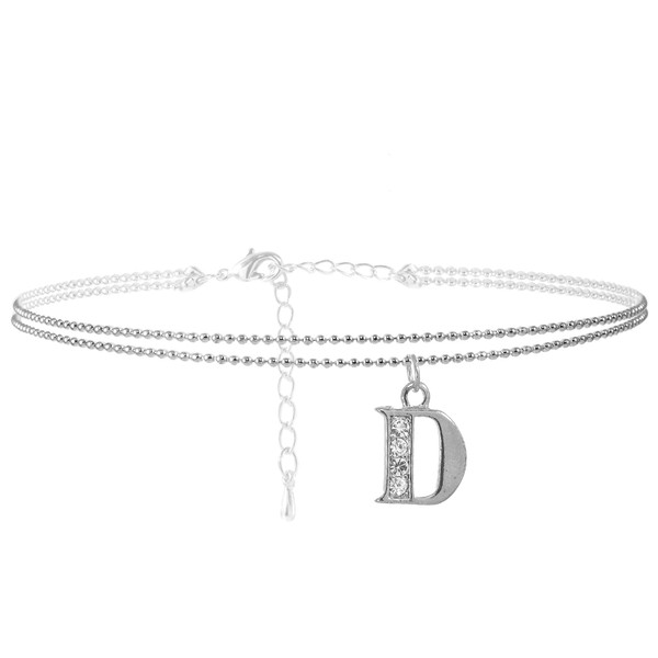 Spinningdaisy Double Line Rhinestone Crystal Initial Anklet (D-Silver)
