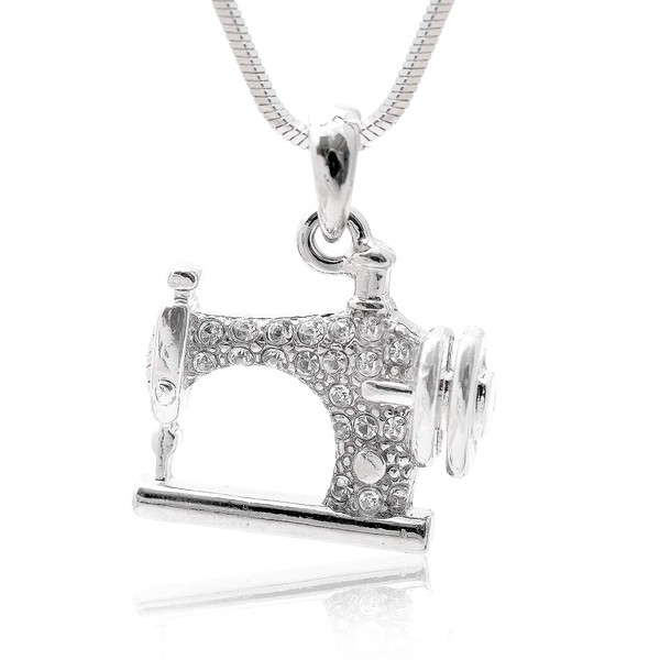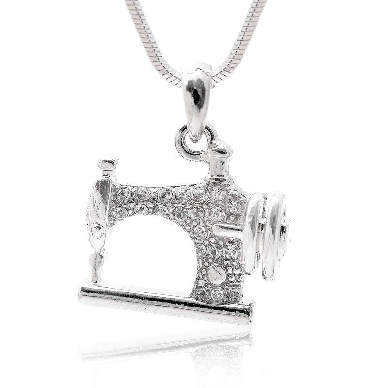 Spinningdaisy Silver Plated Crystal Sewing Machine Necklace