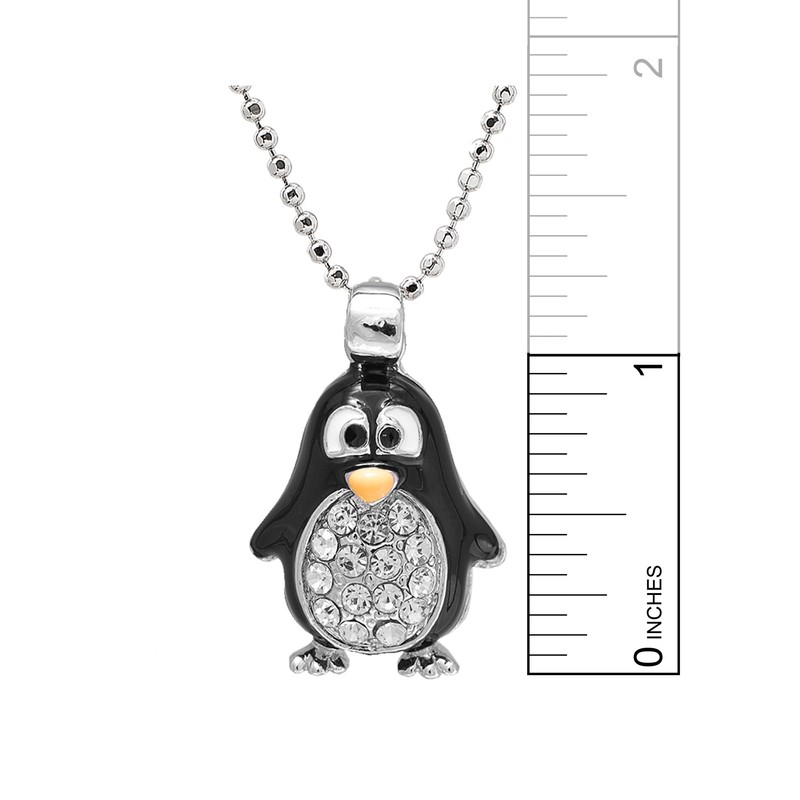 Spinningdaisy Silver Plated Round Body Cute Black Penguin Necklace