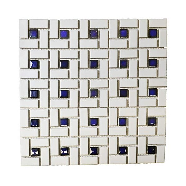 Spiral Pattern Porcelain Tile Matte White with Shiny Cobalt Dots - Pinwheel Design