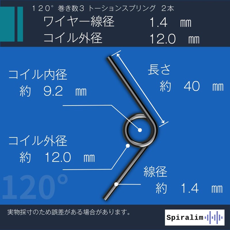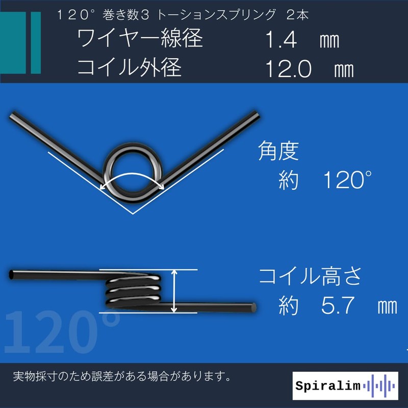 Spiralim Torsion Spring Kick Spring 3 Rolls 120° Spring Torsion Spring (120° Wire Diameter 1.4 Coil Diameter 12mm)