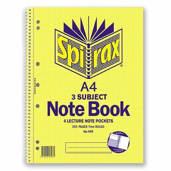 SPIRAX 56599 599 3 Subject Notebook, A4 300 Page