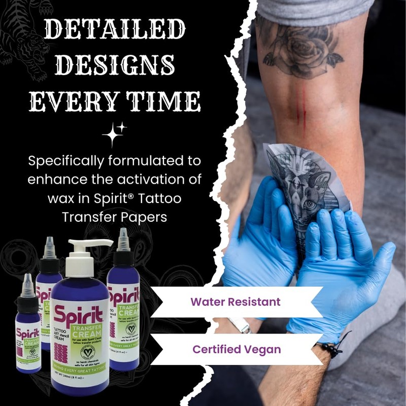 - Developed by Spirit, a Tattoo Transfer Pioneer: With tattoo transfer technology since 1946, our transfer cream reflects trusted industry expertise and commitment to quality.