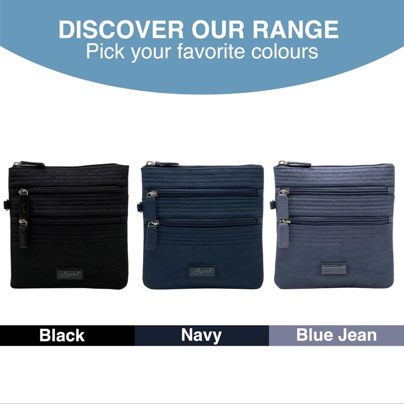 Spirit - Waterproof Crossbody Bag - Unisex - Lightweight Nylon Travel Bag- Multiple Pockets - Zipper Closure - Black Crossbody Bag - Small