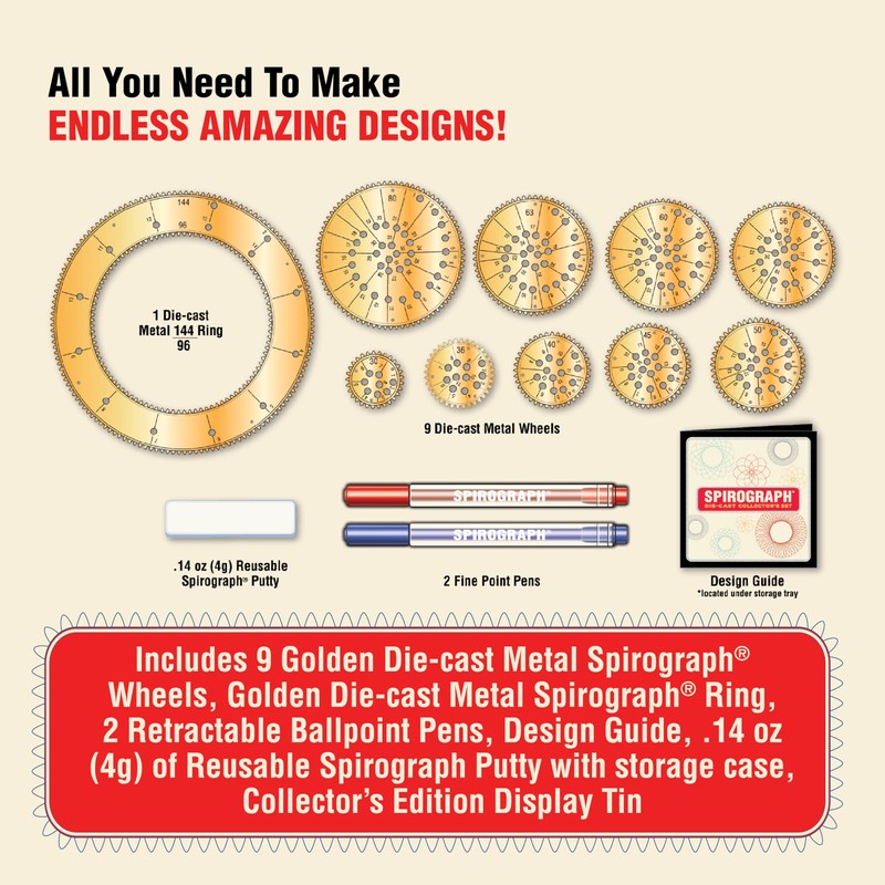 Spirograph Die-Cast Collectors Set – Special Edition, Arts and Crafts, Kids Toys, Art Supplies, Craft Supplies, Drawing Kit, Spiral Art, Metal Gear Design Kit, Pens, Design Sheet Included, Ages 8+
