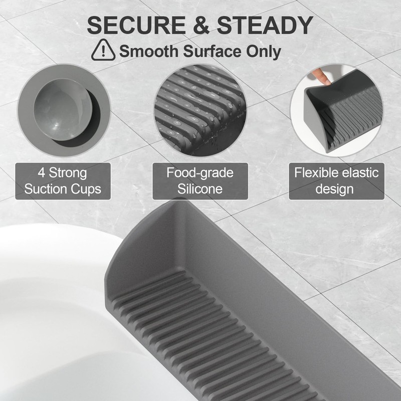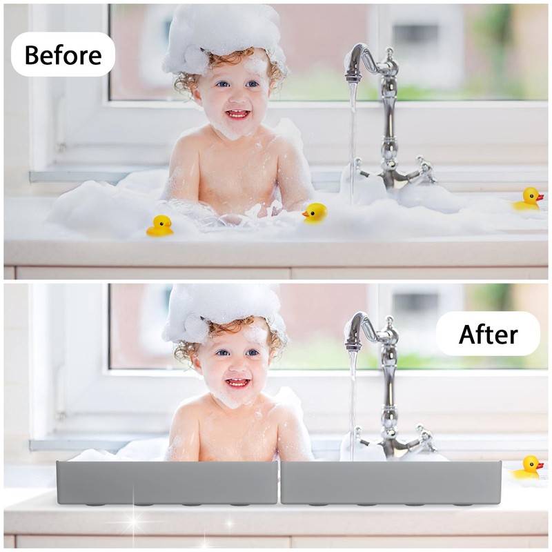 - Secure Attachment: With 4 strong suction cups, it firmly attaches to any smooth surface, providing a stable barrier against water splashes during bath time or dishwashing.