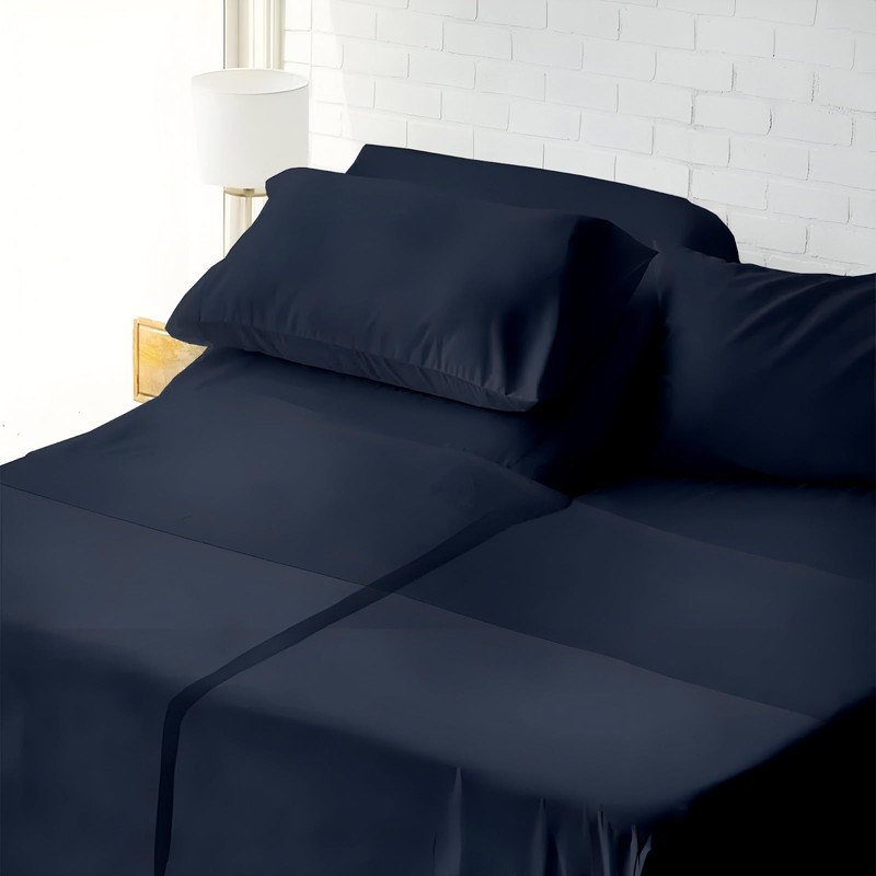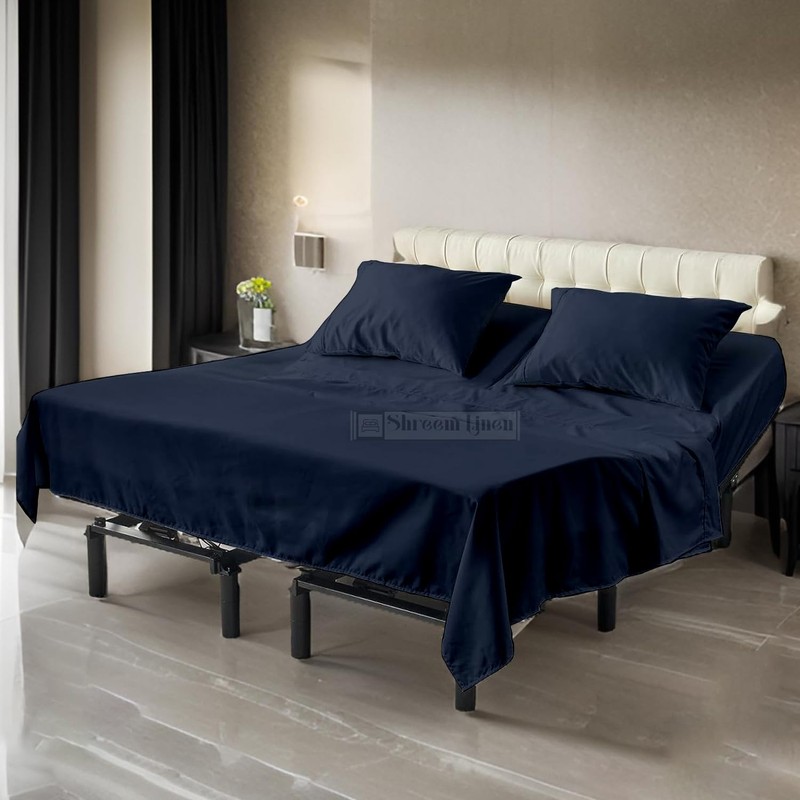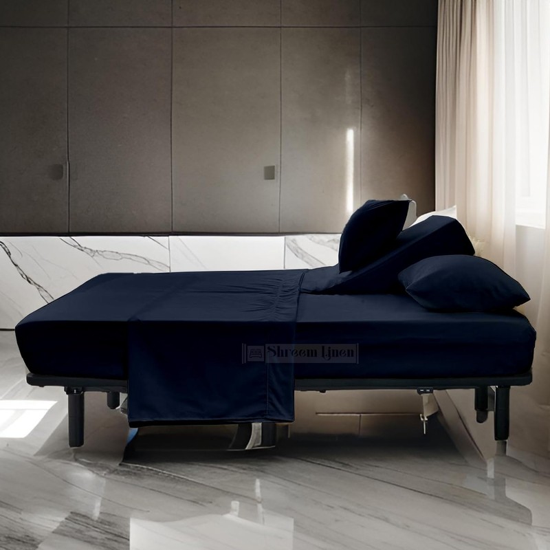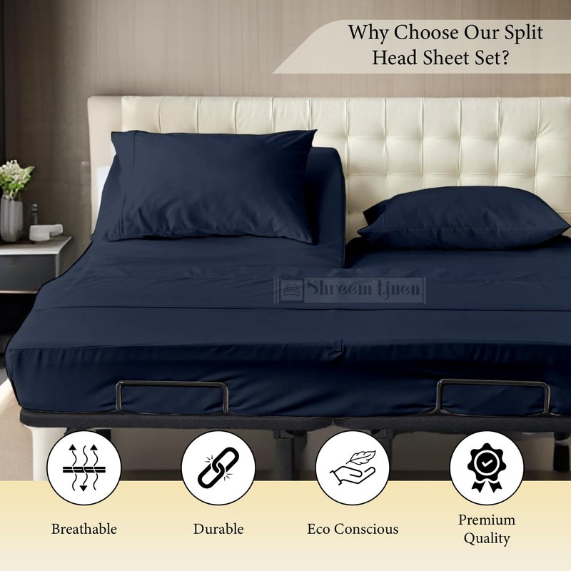 Split Head Flex Queen Sheets for Adjustable Beds,Queen Sheets for Sleep Number Bed 100% Egyptian Cotton - 4Pcs Sheet Set -28" Top Split fit Upto 16" Deep Mattress (Navy Blue Solid)