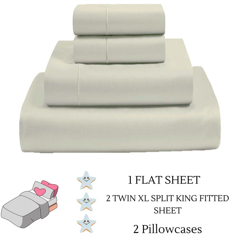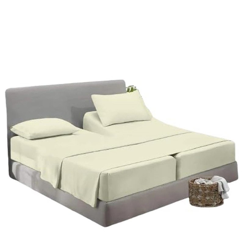 Split King Sheets Sets for Adjustable Bed Cotton-Split King Sheets Deep Pockets-5 Pcs -Split King Sheets for Adjustable Bed Twin XL, Ivory 16 Inch Deep Sheets