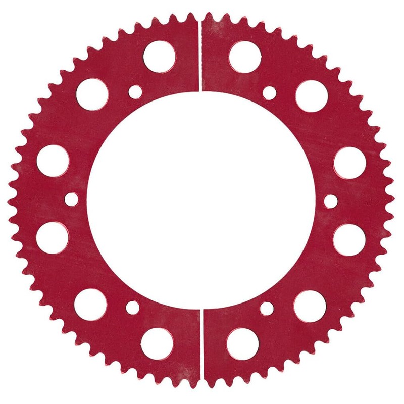 Split sprockets may be red or silver depending on inventory.