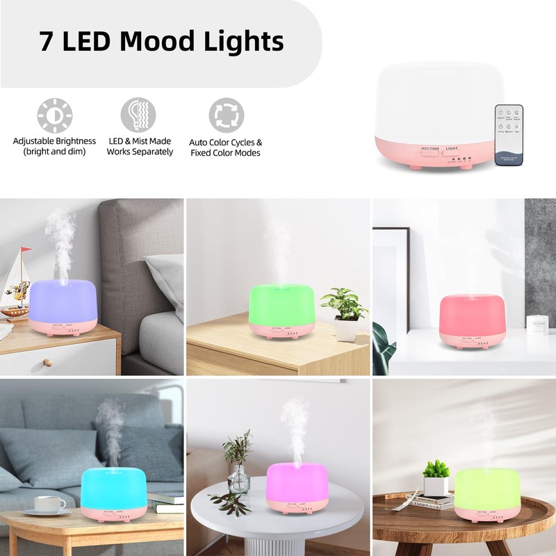 SPLITSKY 300ML Essential Oil Diffuser, Cool Mist Small Diffuser with Remote Control, 7 Color Changing LED Light, 4 Timer Settings,Waterless Safety Shut Off, for Bedroom, Room, Office(Pink)
