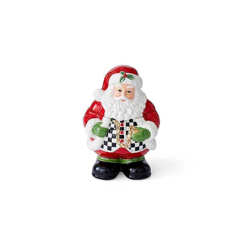 - Festive Holiday Design: This Figural Santa candy jar adds a fun, festive twist to your decor with its jolly Santa design featuring a black and white vest, red and green accents, and classic holiday charm.
