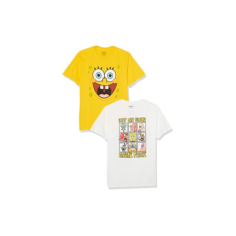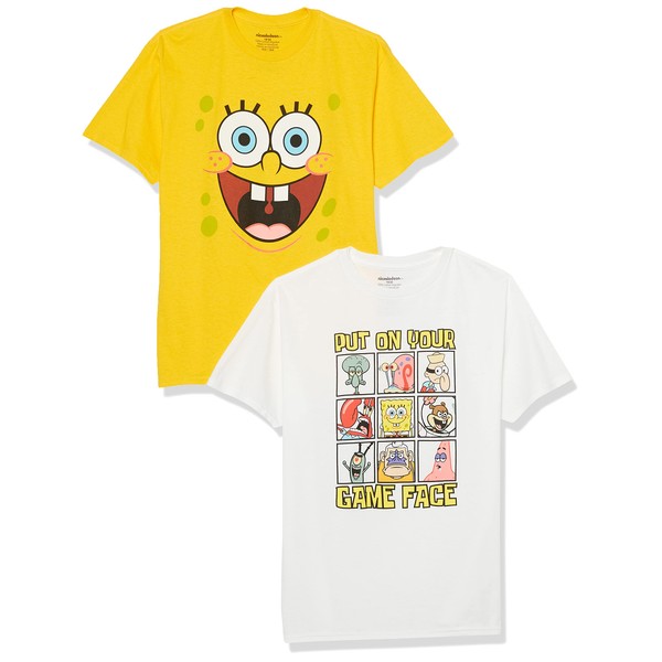SpongeBob Squarepants Big Boys 2-Pack T-Shirt Bundle-Nickelodeon, White/Yellow