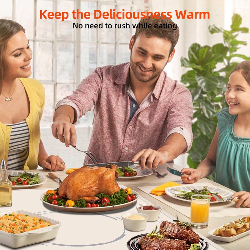 • 【Fast Full-Surface Heating】Equipped with advanced full-surface heating technology, this electric warming mat heats up in just 30 seconds, evenly warming every corner of the food warming mat . No more cold spots—your dishes stay perfectly warm and delicious, ready to serve at any time.