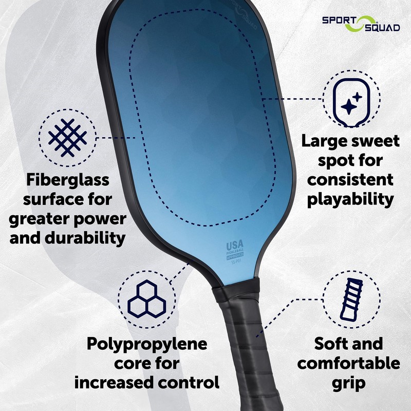 Sport Squad 2-Player Pickleball Paddle Set - 2 Fiberglass/Graphite Paddles & 2 Long-Lasting Outdoor Balls - Designed to Maximize Power Skill Levels - USAP Approved - Kids + Adults