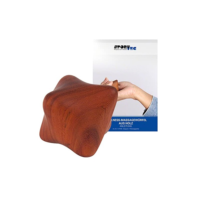 The wellness massage cube allows for a relaxing self-massage. Thanks to its shape, it is particularly suitable for massage on your own palms. After a hard day at the keyboard, a self-massage with the massage cube is a treat for your hands. Product features: made of Thai hardwood. Weight: 30 g. Dimensions (L x W): 4 x 5.5 cm.