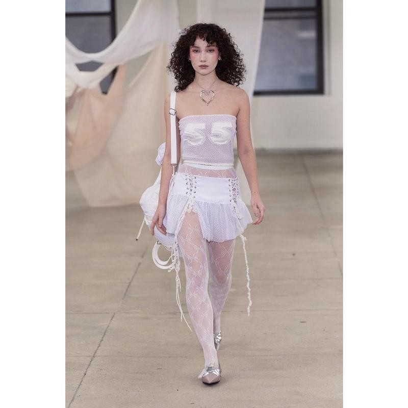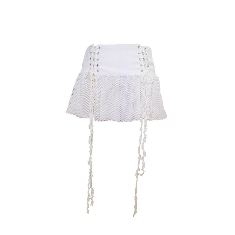 The ruffled skirt with mesh overlay gives it a flirty and playful vibe. This skirt features laced up details on the front, adding a touch of edge to your athletic look.